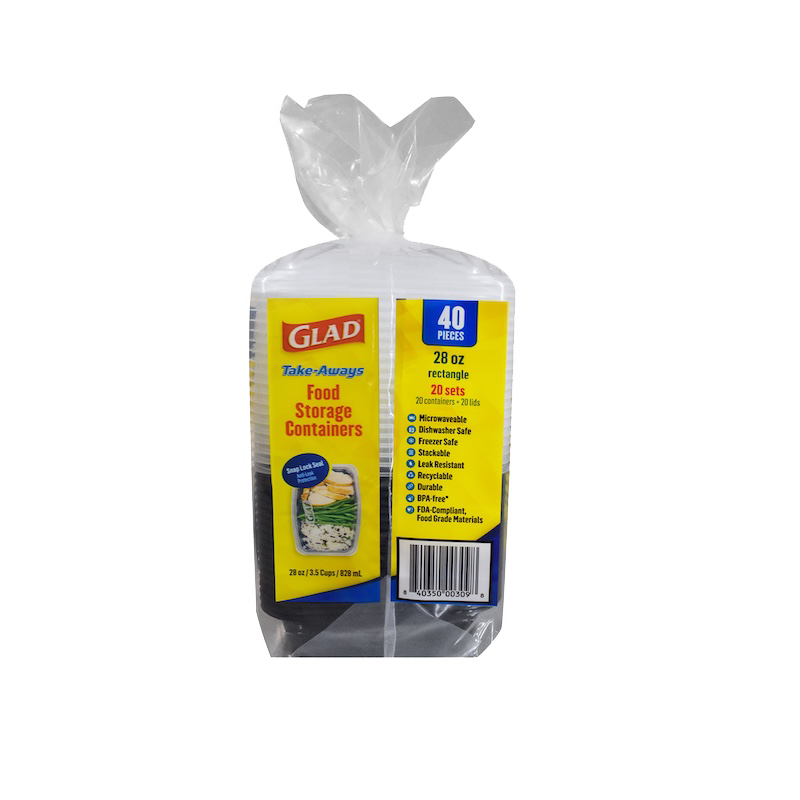 From fridge to lunch bag, this 28oz container is your meal prep power move. Big enough for full meals, light enough for daily use. Glad Take-Aways’ 28oz Rectangle food container offers a reliable, reusable solution for storing entrees, leftovers, and meal-prepped portions. Crafted from BPA-free, FDA-compliant plastic with a tight-sealing lid, it’s microwave, freezer, and dishwasher safe. Available in a bag of 20, the stackable design saves space while the durable build stands up to everyday use. Sustainable options available.
