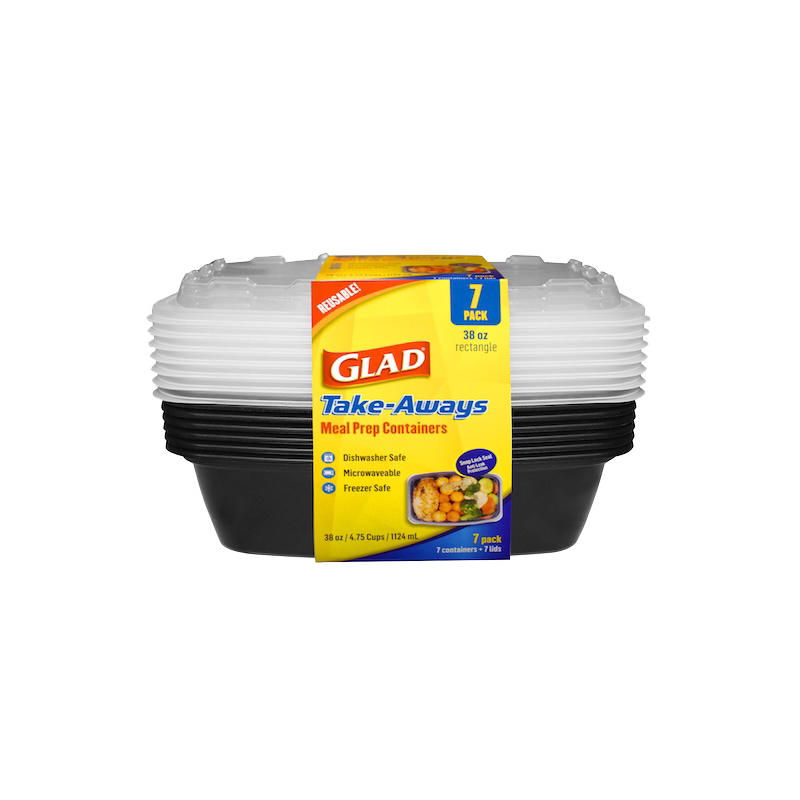 Glad Take-Aways’ 38oz Rectangle food container is built for larger servings and bulk meal prep. With a leak-resistant lid and BPA-free, FDA-compliant construction, it’s microwave, freezer, and dishwasher safe. Ideal for keeping big meals fresh and organized—whether at home or on the move. Retail-ready bellyband packaging includes 7 containers for compact, stackable storage. Sustainable options available.